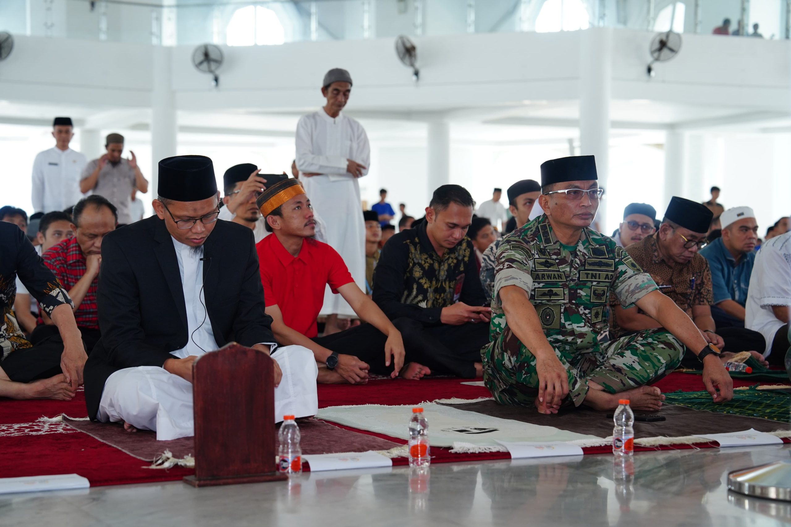 Makassar – Kepala Pembinaan Mental dan Sejarah Kodam (Kabintaljarahdam) XIV/Hasanuddin, Kolonel Cba Arwan Asrib, S.E., menghadiri peringatan Isra’ Mi’raj Nabi Muhammad SAW 1446 H/2025 M, bertempat di Masjid Kubah 99 Asmaul Husna, Center Point of Indonesia (CPI), Kota Makassar. Jumat (31/01/2025).