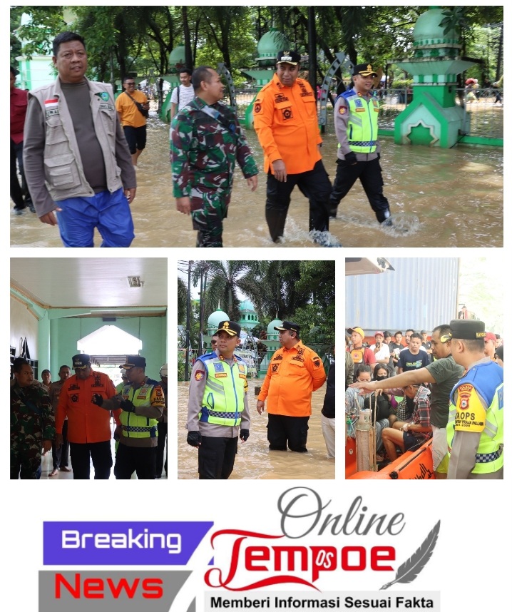 Kapolres Maros AKBP Douglas Mahendrajaya bersama Bupati Maros Chaidir Syam, Dan sejumlah Forkopimda meninjau langsung kondisi banjir di jalan jendral Sudirman