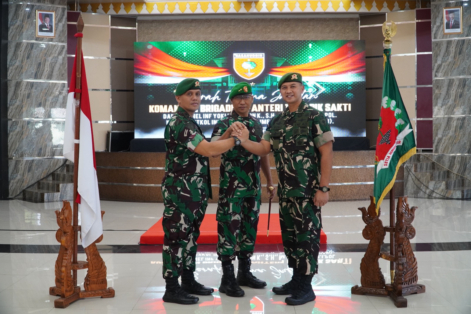 Jabatan Dabrigif 11/BS diserahterimakan dari Kolonel Inf Yoki Malinton K., S.H., M.Tr.(Han)., M.I.P., kepada Letkol Inf Arif Budi Situmeang, S.I.P., M.Tr.(Han)., yang ditandai dengan penandatanganan naskah berita acara sertijab, berita acara sumpah jabatan dan penciuman Pataka Kodam XIV/Hasanuddin.
