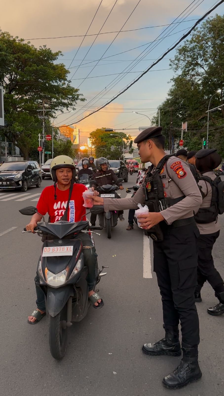Kegiatan ini bertujuan untuk membantu masyarakat yang masih berada di perjalanan saat waktu berbuka puasa tiba. Sejumlah personel dari Patroli Perintis Presisi tampak membagikan takjil kepada pengendara roda dua maupun roda empat dengan penuh antusias.