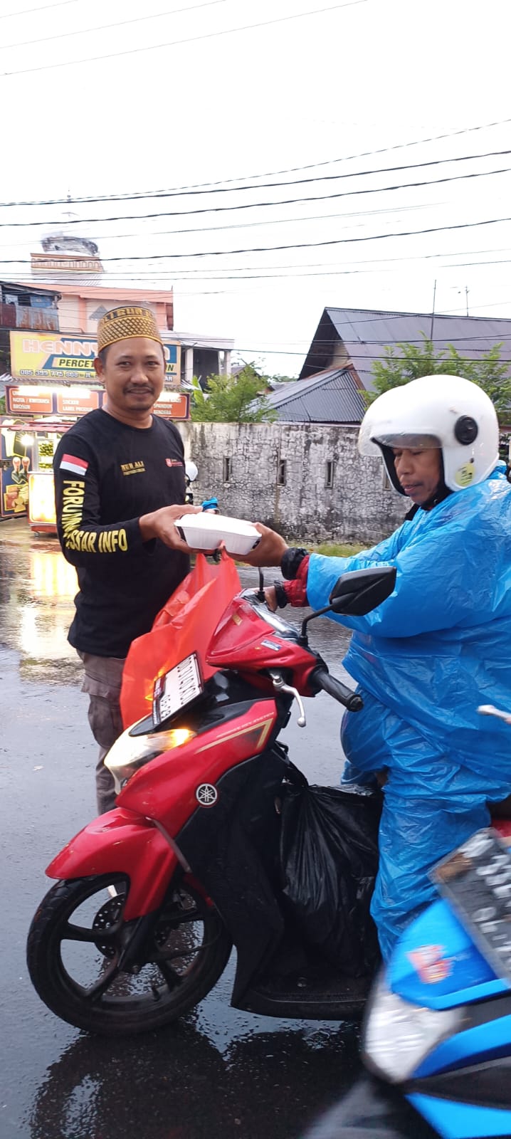 PT. Group Media Center dan Forum Makassar Info Bagikan 250 Paket Takjil dan Nasi Dos di Perempatan Lampu Merah Jalan Sunu