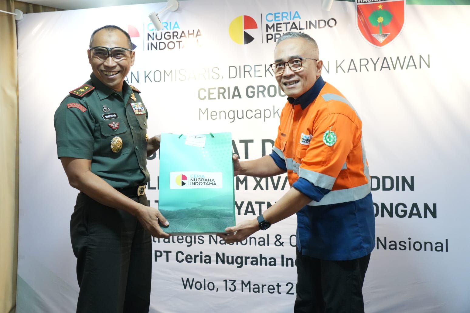 Sebagai bentuk penghormatan, PT CNI dan Pangdam saling bertukar cendera mata dan souvenir. Usai seremoni di Rumah VIP Manado, rombongan melanjutkan kunjungan ke Smelter Merah Putih. Di lokasi tersebut, Pangdam menerima paparan singkat dari perwakilan PT Ceria Metalindo Prima (CMP), Toni, mengenai operasional smelter.