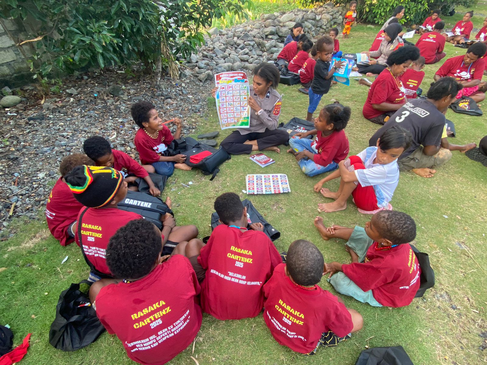 Setiba di lokasi, tim disambut hangat oleh anak-anak dan warga setempat. Pembelajaran diawali dengan doa bersama, kemudian dilanjutkan dengan kegiatan literasi dasar bagi anak-anak yang belum bisa membaca. Sebagian personel lainnya, seperti Iptu Yuliani Tecuari dan Brigpol Hartati, memberikan bimbingan kepada anak-anak dan ibu-ibu yang sudah mulai bisa membaca, serta menyisipkan materi wawasan kebangsaan.